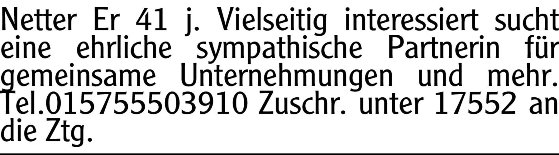 Netter Er 41 j. Vielseitig interessiert sucht eine ehrliche sympathische Partnerin für gemeinsame Unternehmungen und mehr.