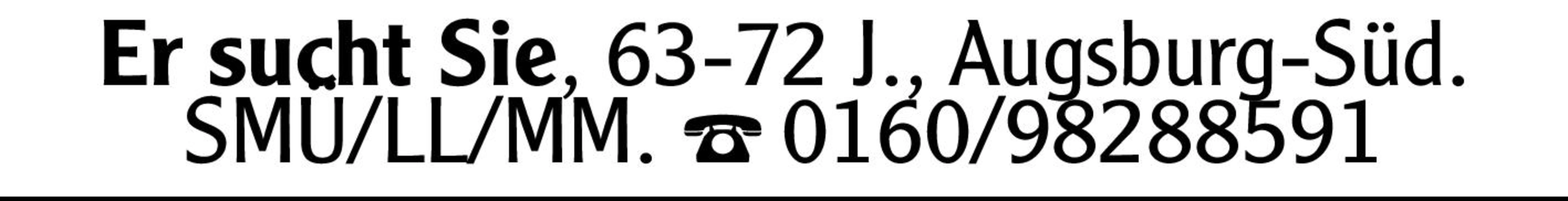 Er sucht Sie, 63-72 J., Augsburg-Süd. SMÜ/LL/MM. Tel. 0160/98288591