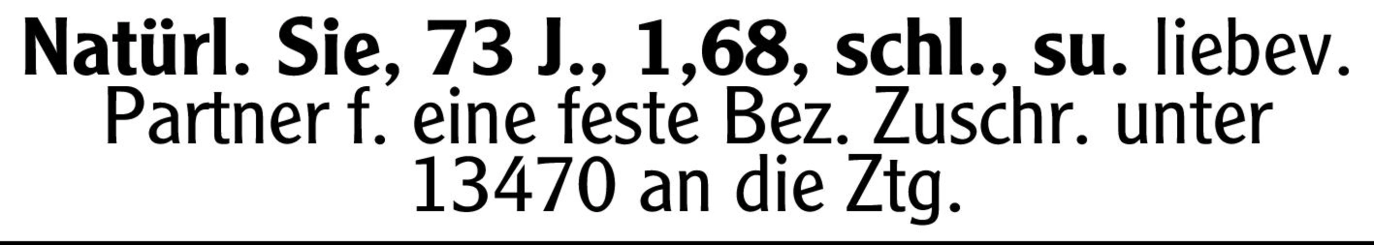 Natürl. Sie, 73 J., 1,68, schl., su. liebev. Partner f. eine feste Bez. Chiffre-Nr.: 13470