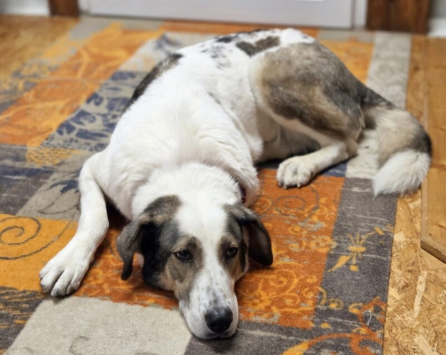 Hündin Georgia (PLZ 86949), ca. 8J, 70cm, 35kg, Hunde/Katzen ok, leinenführig, stubenrein, menschenbezogen sucht ruhiges Zuhause in ländlicher Gegend. Kastriert, geimpft, gechipt, Schutzgebühr 390EUR.
