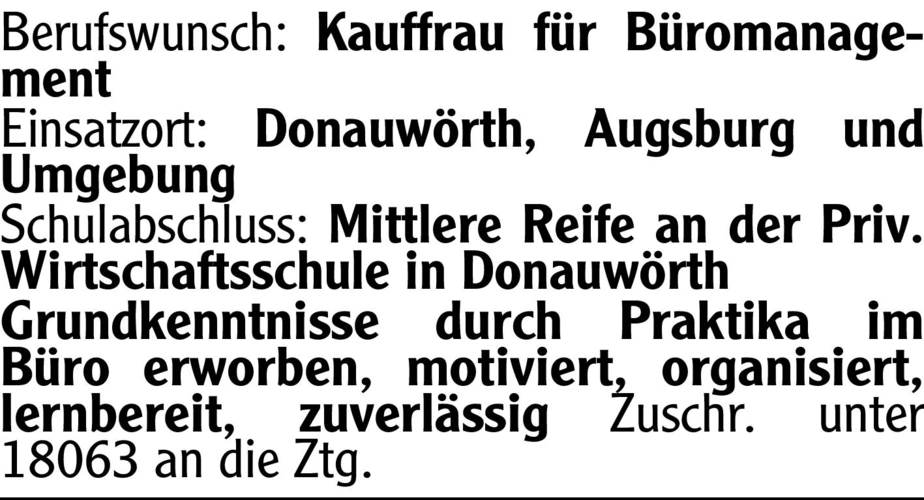 | Mittlere Reife an der Priv. Wirtschaftsschule in Donauwörth |