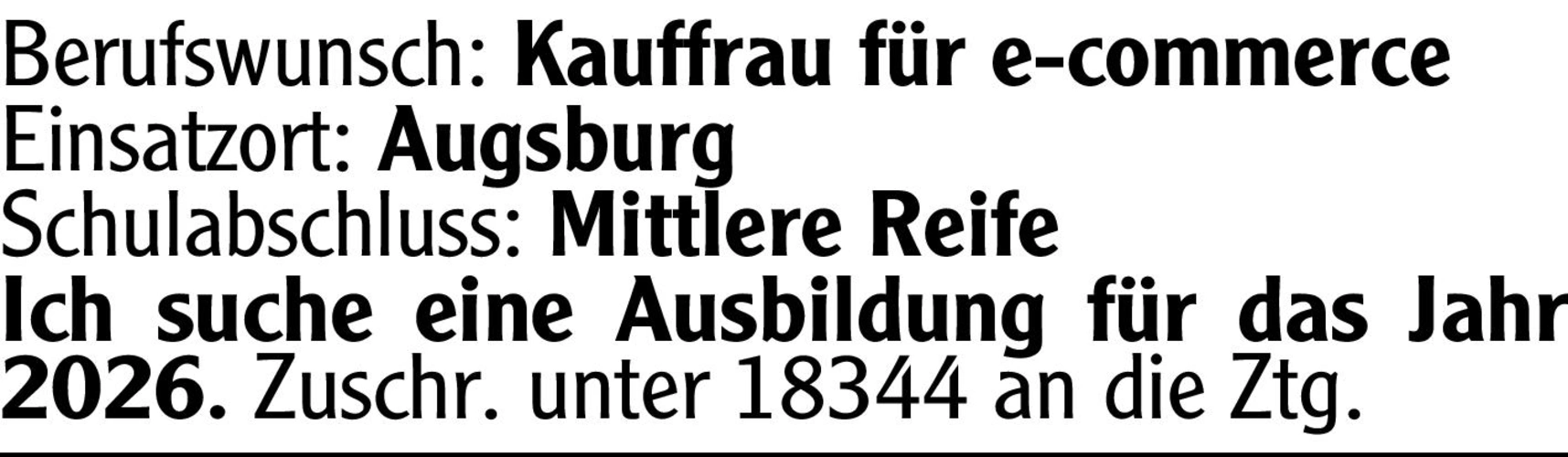 Ich suche eine Ausbildung für das Jahr 2026.