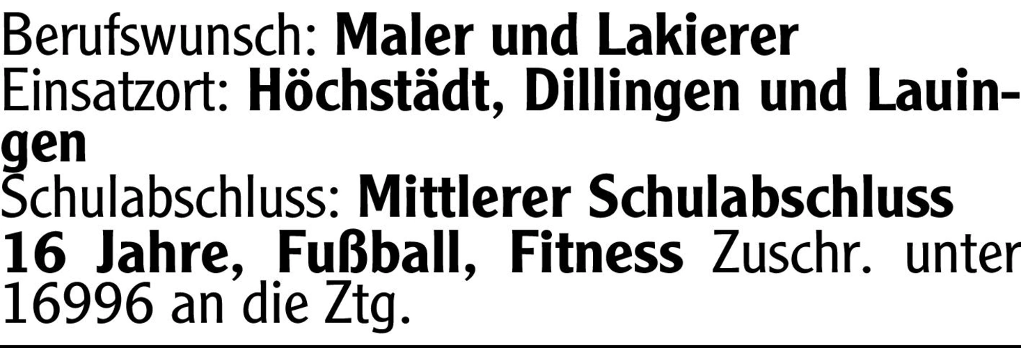 Interessiert? Kontaktiere uns unter der Chiffre-Nummer 16996 und starte deine Karriere noch heute!