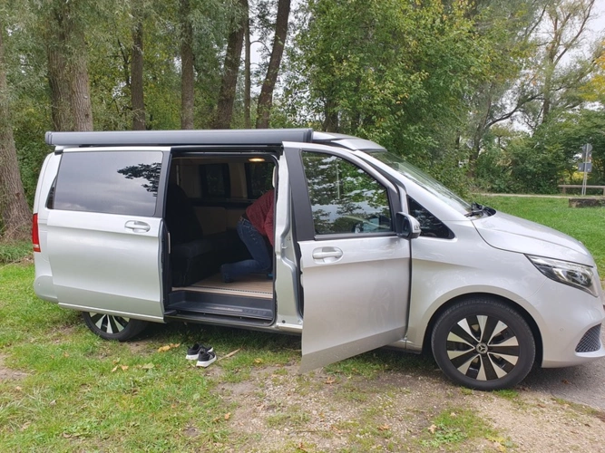 9744 Lakierung brilliantsilber metallic V4S Stoff Santos schwarz MARCO POLO 555 Marco Polo V-Klasse "EDITION" ÄJ2022 Q50 Anhängerkupplung Kugelkopf abnehmbar YS5 Seitliche Markise, anthrazit W68 EASY-PACK Heckklappe HZ7 Klimaanlage halbautom. geregelt, TEMPMATIC im Fond 00 HH4 Klimatisierungsautomatik THERMOTRONIC EZ6 Park-Paket mit 360°-Kamera YF0 Campingtisch und 2 Stühle E4S Smartphone-Integrationspaket JP5 Standard-Assistenz-Paket XM4 Akustikpaket JA9 Verkehrszeichen-Assistent F48 Heizung für Scheibenwaschanlage LG8 Fernlichtassistent PLUS YF7 Feuerlöscher 1 kg QA4 Anhängelast 2500 kg LC9 Ambientebeleuchtung im Cockpit EX8 Navigation Plus VB3 Fliegen / Mückengitter für Schiebefenster VL2 Fußmatten Velours FP5 Sport-Paket FP3 Spiegel-Paket