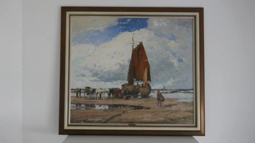 Ölgemälde Segelboot am Strand, signiert von Karl Mohr 1922-2013, 70 x 80 cm,mit Rahmen, VB 250,-,Tel. 0171-6230280
