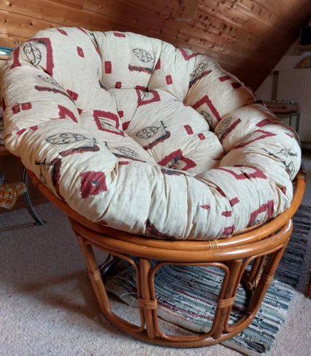 Rattan-Stuhl, 1x1 m, 3-teilig, inkl. Kissen, 50 EUR, Tel. 0160/8982790