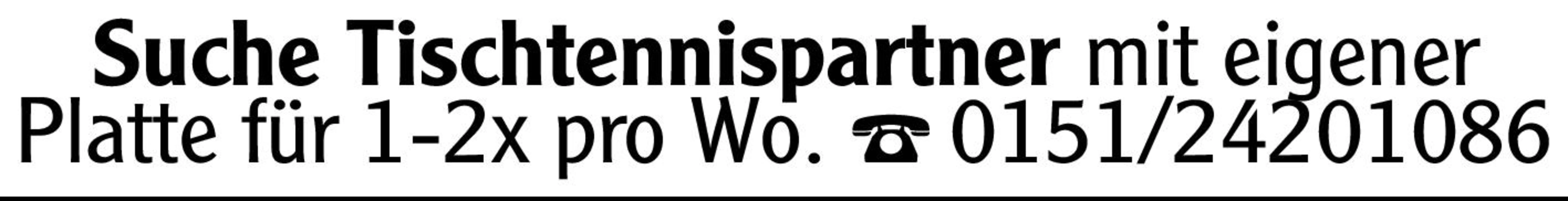 Suche Tischtennispartner mit eigener Platte für 1-2x pro Wo. Tel. 0151/24201086