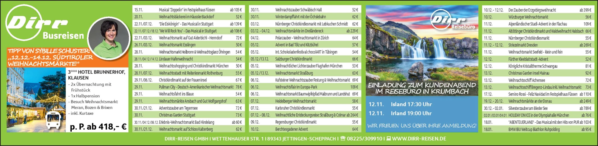 - 29.11. Weihnachtsfahrt ins Blaue 54 EUR