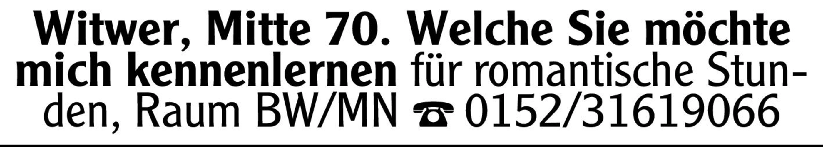 Witwer, Mitte 70. Welche Sie möchte mich kennenlernen
